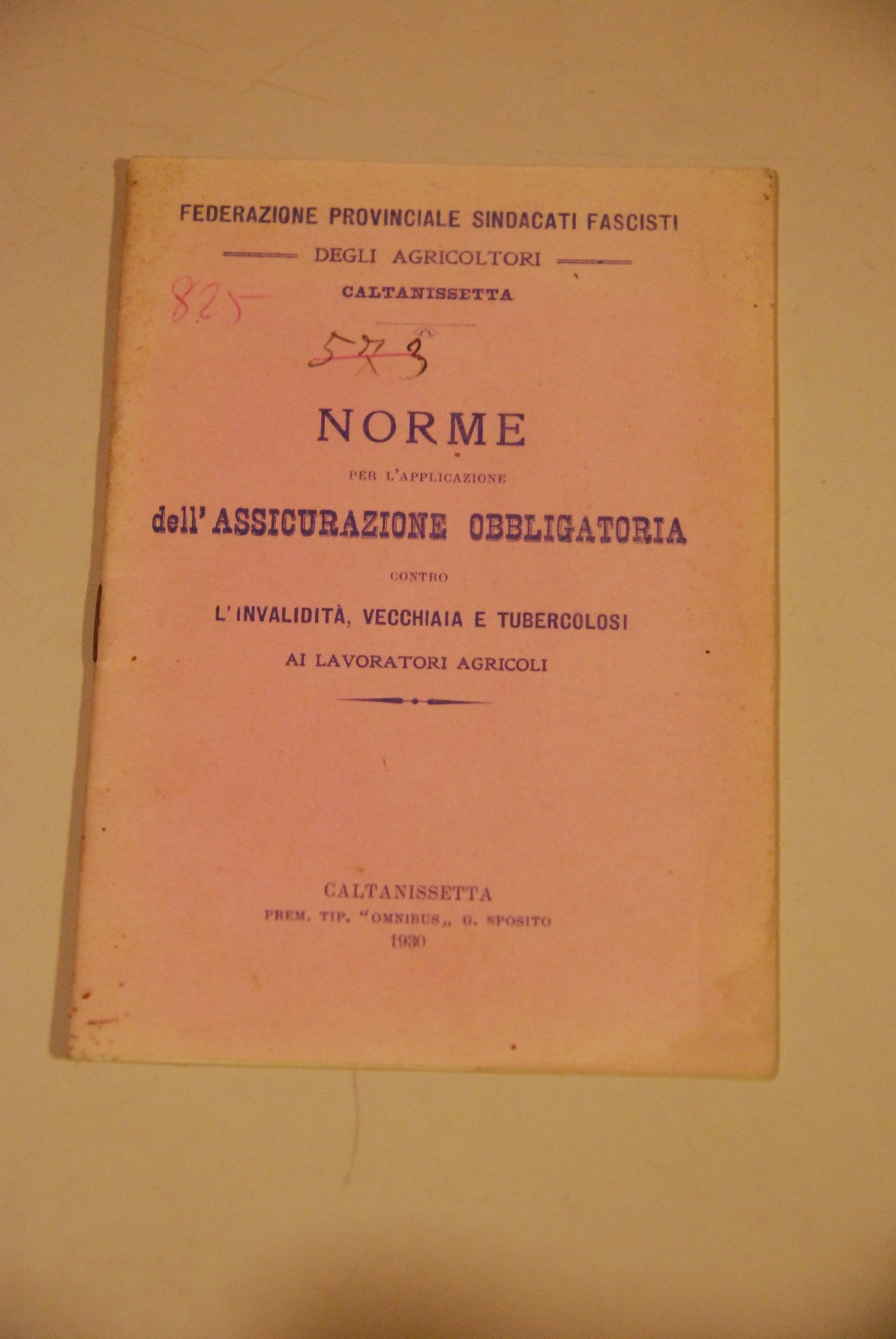 norme per l'applicazione dell'assicurazione obbligatoria contro invalidità vecchiaia e tubercolosi lavoratori agricoli 1930. 1930 .