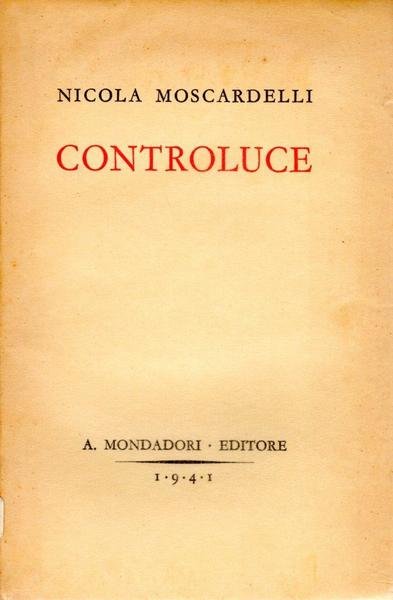 Controluce, prima edizione febbraio 1941, pp. 216, formato 13 x 19,5.<BR>Copertina morbida con titoli in nero e rosso al piatto anteriore e sul dorso. Presente sovraccoperta trasparente di protezione.<BR>Lievi bruniture al piatto anteriore e sul dorso. Nel complesso ottime condizioni.