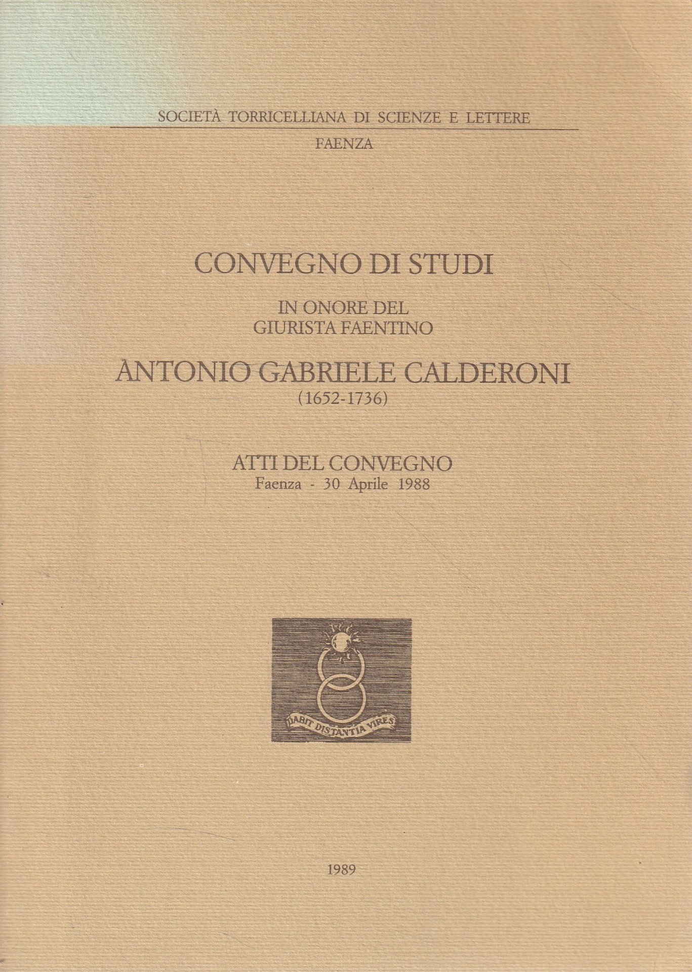 Convegno di studi in onore del giurista faentino Antonio Gabriele Calderoni (1652-1736). Atti del Convegno Faenza - 30 Aprile 1988