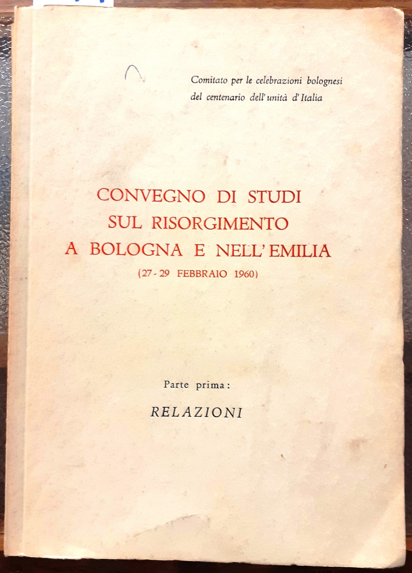 CONVEGNO DI STUDI SUL RISORGIMENTO A BOLOGNA E NELL'EMILIA 827-29 febbraio 1960)., Parte prima. RELAZIONI. (Interventi di: Luigi dal Pane; Umberto Marcelli; Aldo Berselli, Francesco Flora).
