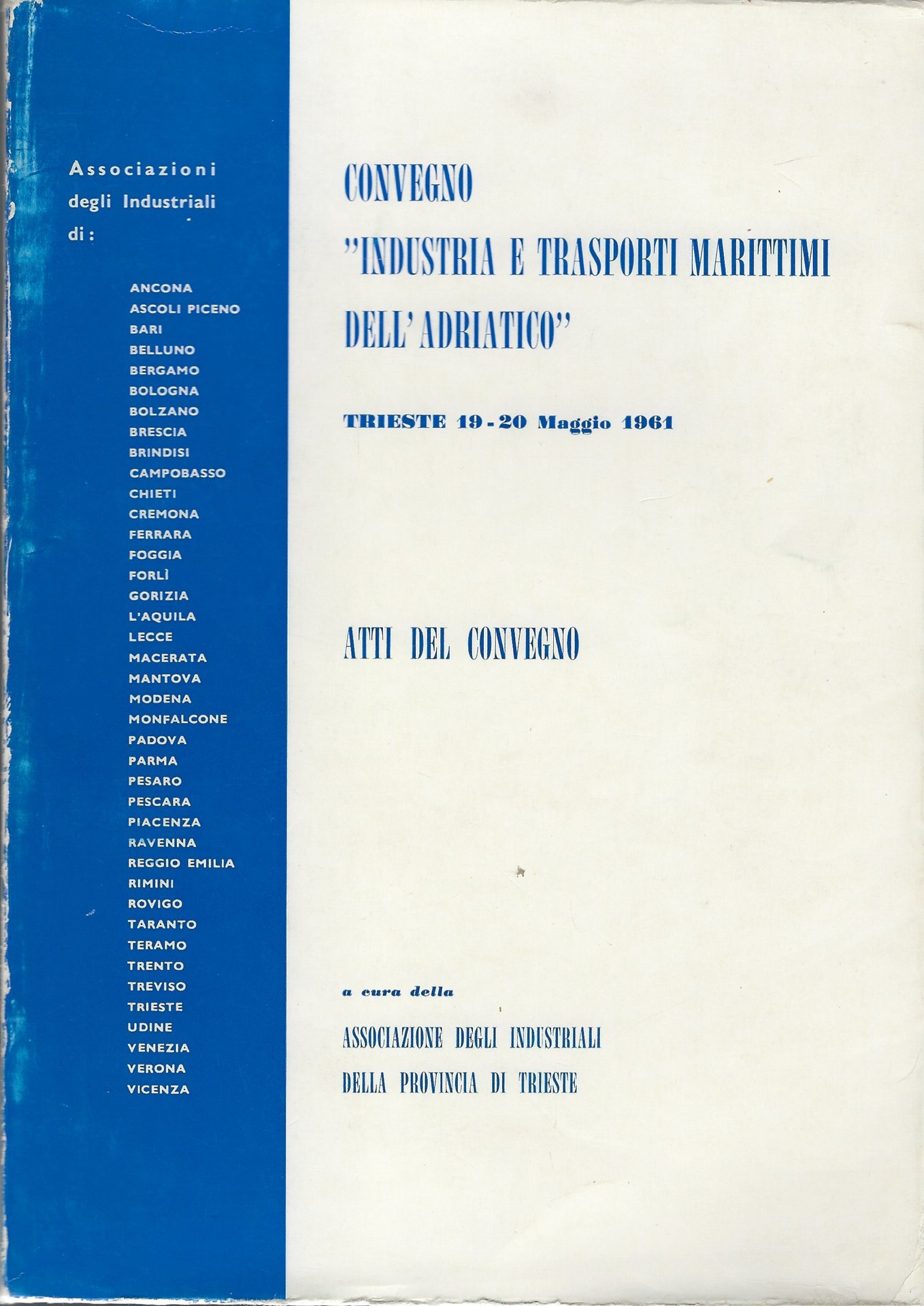 Convegno "Industria e trasporti marittimi dell'Adriatico". Trieste 19-20 Maggio 1961. Atti del convegno.