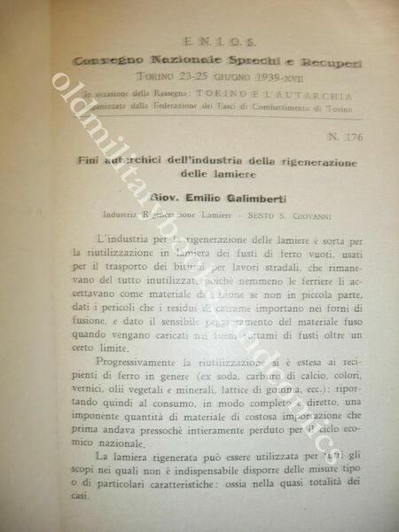 CONVEGNO NAZIONALE SPRECHI E RECUPERI LA DIFFERENZIATA NEGLI ANNI '30 AUTARCHIA