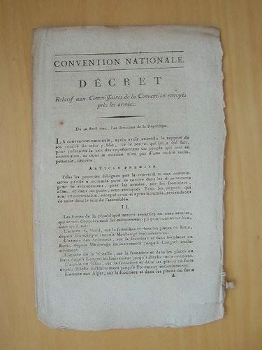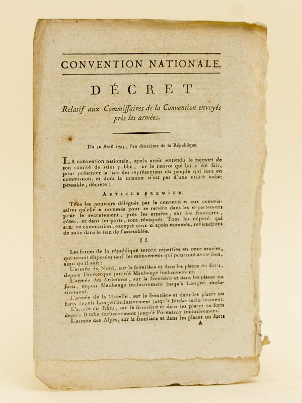 Convention Nationale. Décret relatif aux Commissaires de la Convention envoyés près les armées. Du 30 avril 1793, l'an deuxième de la République.