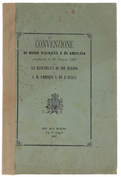 CONVENZIONE DI BUON VICINATO E DI AMICIZIA CONCHIUSA IL 28 GIUGNO 1897 TRA LA REPUBBLICA DI SAN MARINO E S.M. UMBERTO I RE D'ITALIA.
