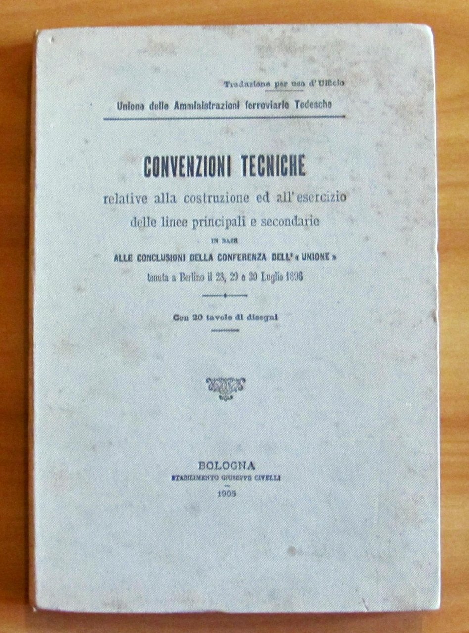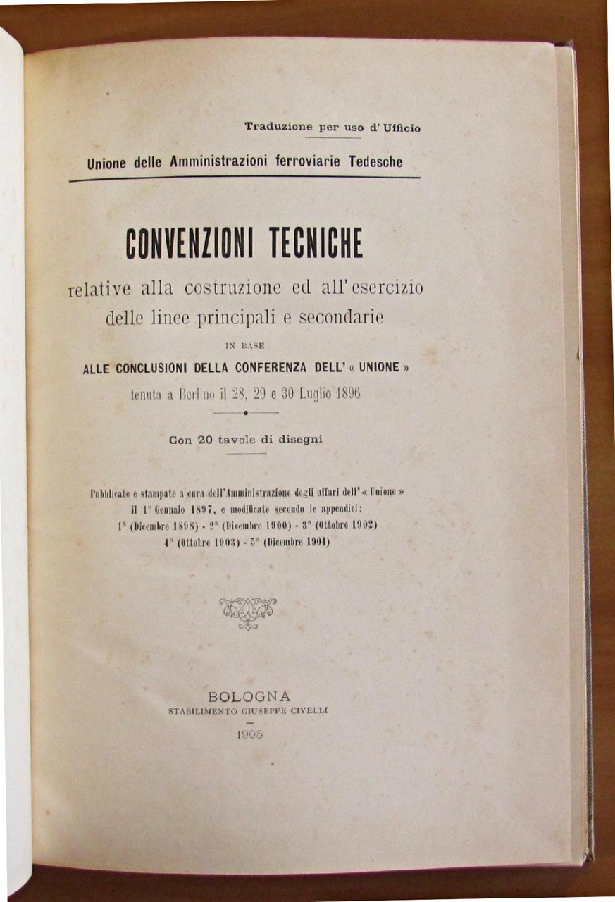 Convenzioni Tecniche relative alla costruzione ed all'esercizio delle linee principali e secondarie in basealle conclusioni della conferenza dell'"Unione" tenuta a Berlino il 28, 29 e 30 Luglio 1896 Traduzione per uso d'Ufficio