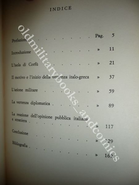 DESCRIZIONE: Volpe Ed. Roma 1973 I^ Ed., br. ed. ill. pp. 180 con alcune ill. b/n ed 1 carta f.t. in 8°. Il 28 agosto si seppe che il generale Tellini e gli altri membri della commissione italiana, delegata alla delimitazione della frontiera greco - albanese, erano stati massacrati poco lontano da Gianina, in territorio greco. Per chiamare il governo greco alle sue responsabilità, Mussolini ordinò l'occupazione dell'isola di Corfù, avvertendo che l'Italia non intendeva far atto di guerra, ma solo prendere un pegno. Il periodo dell'occupazione italiana di Corfù che costituì il primo atto di politica estera mediterranea autonoma del Governo italiano dopo la fine della prima guerra mondiale. Indice completo in foto a fine inserzione. CONDIZIONI: Buone/Ottime. PESO / WEIGHT: 252 gr. without package