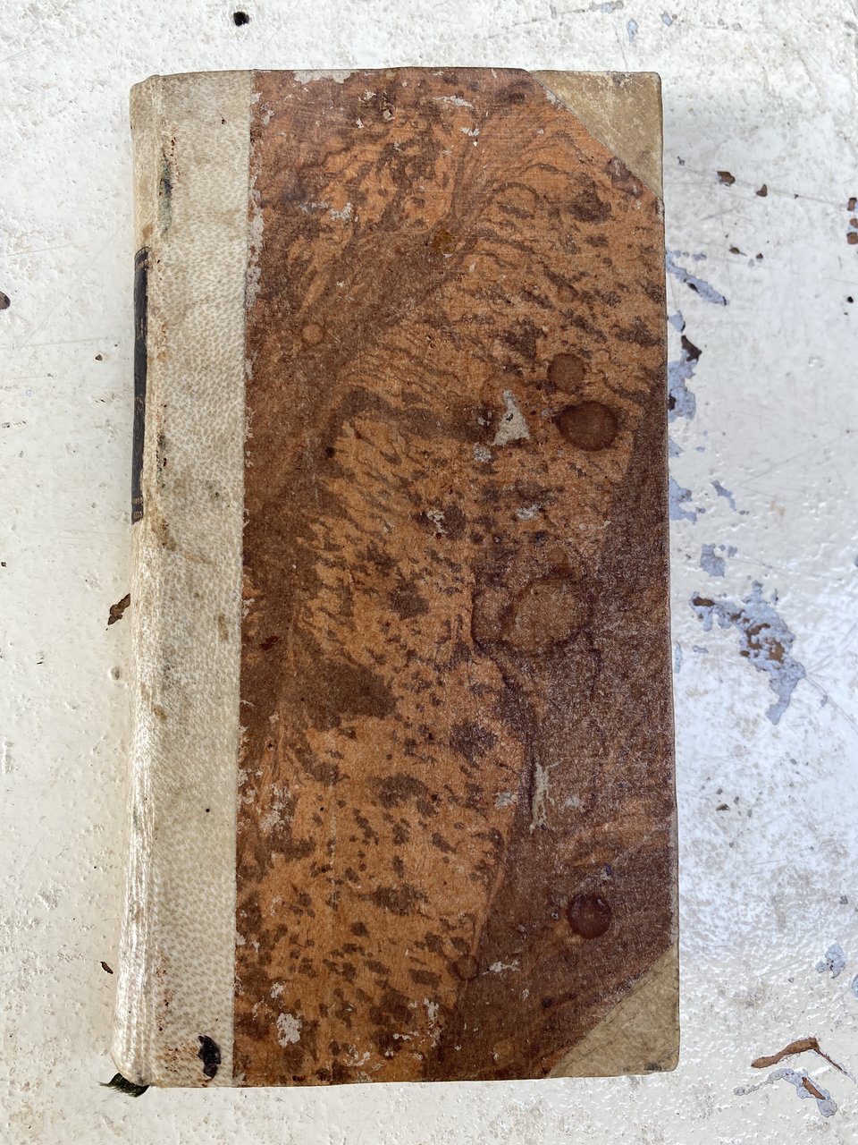 Vol. unico, piccole dimensioni in -24, pp. 132, leg. mezza pergamena con piatti marmorizz., tassello marrone, bruniture, qualche segno d'uso, un tassello manoscritto antico nel retro del piatto.