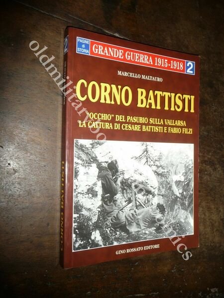 TITOLO: CORNO BATTISTI OCCHIO DEL PASUBIO SULLA VALLARSA LA CATTURA DI CESARE BATTISTI E FABIO FILZI DESCRIZIONE: Gino Rossato Ed. Vicenza 1998, br. ed. ill. col., pp. 94 num. illustrazioni e mappe b/n e col. n.t. in 8°. CONDIZIONI: Ottime. PESO / WEIGHT: 400 gr. without package