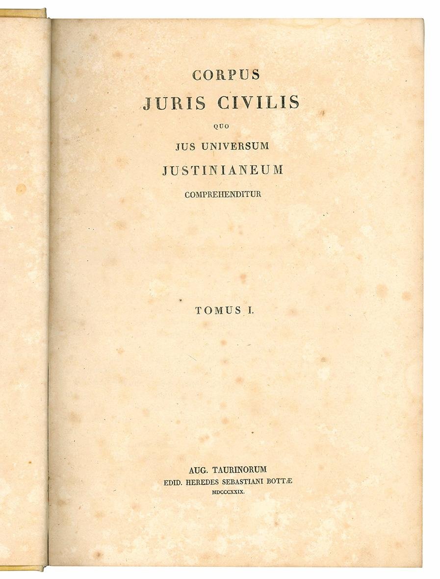 Corpus juris civilis quo jus universum Justinianeum comprehenditur. Tomus I (-II).