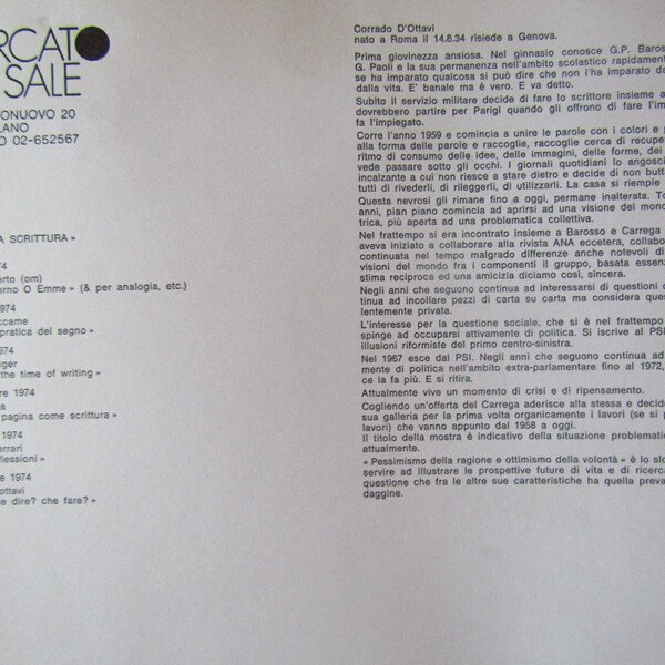 ' La Nuova Scrittura ' N°6, catalogo mostra Milano, Mercato del Sale, 7 novembre 1974, cartella, formato 25x35, contenente un ciclostilato di pagine 4 e una riproduzione di un'opera, ottime condizioni - 44828