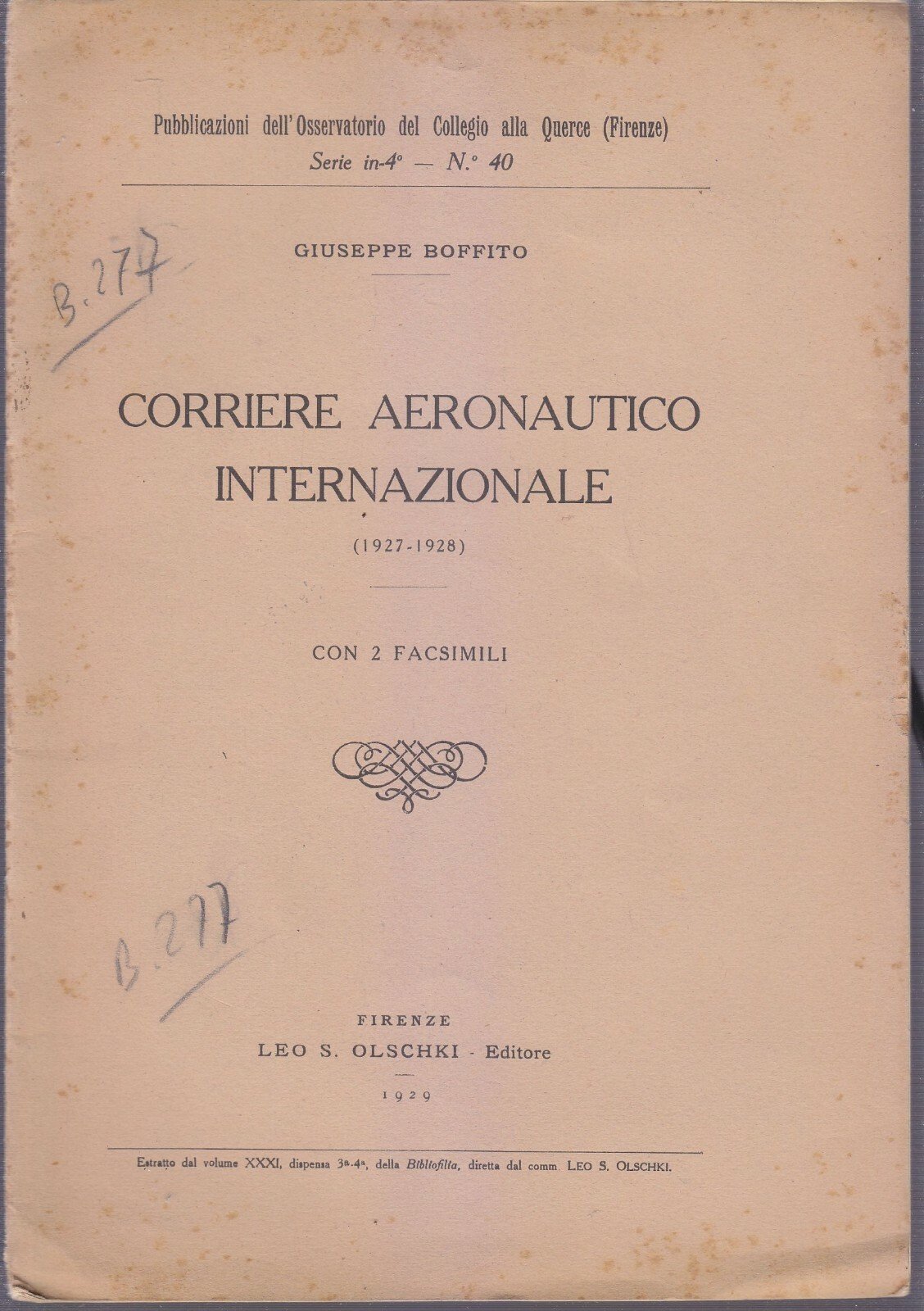CORRIERE AERONAUTICO INTERNAZIONE 1927 1928 di Giuseppe Boffito rivista Olschki