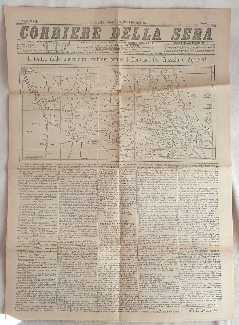 CORRIERE DELLA SERA MILANO LUNEDI MARTEDI 18 19 GENNAIO 1897