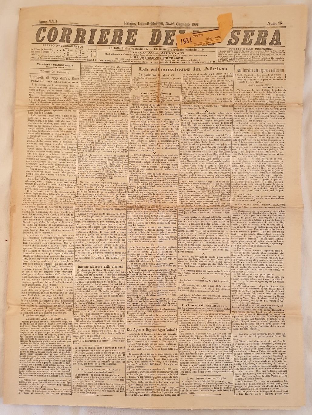 CORRIERE DELLA SERA MILANO LUNEDI MARTEDI 25 26 GENNAIO 1897
