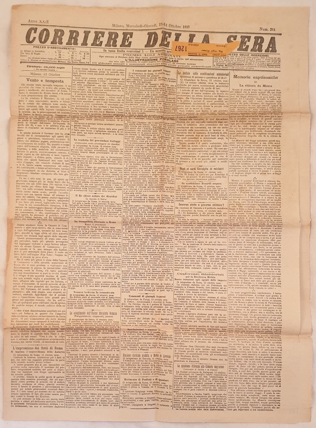 CORRIERE DELLA SERA MILANO MERCOLEDI GIOVEDI 13 14 OTTOBRE 1897