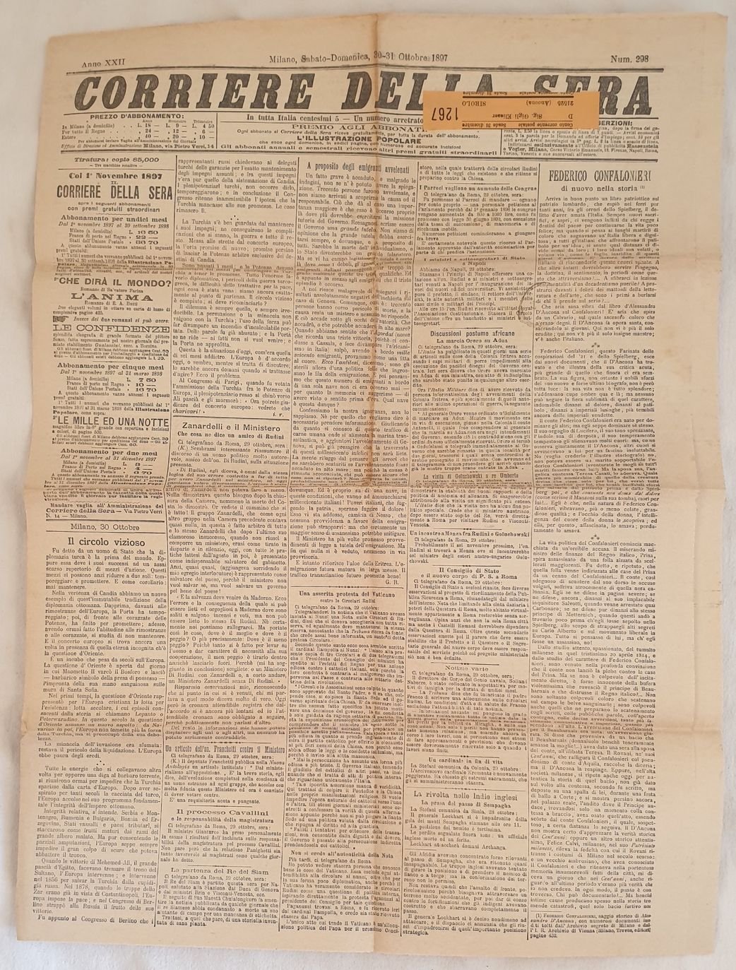 CORRIERE DELLA SERA MILANO SABATO DOMENICA 30-31 OTTOBRE 1897
