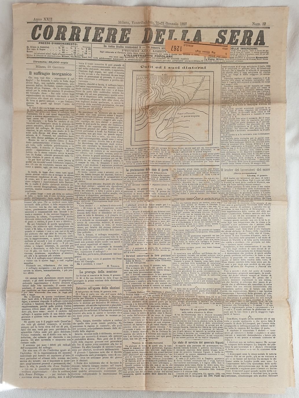 CORRIERE DELLA SERA MILANO VENERDI SABATO 22 23 GENNAIO 1897