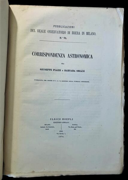 Corrispondenza Astronomica fra Giuseppe Piazzi e Barnaba Oriani, pubblicate per ordine di S. E. il Ministro della Pubblica Istruzione.