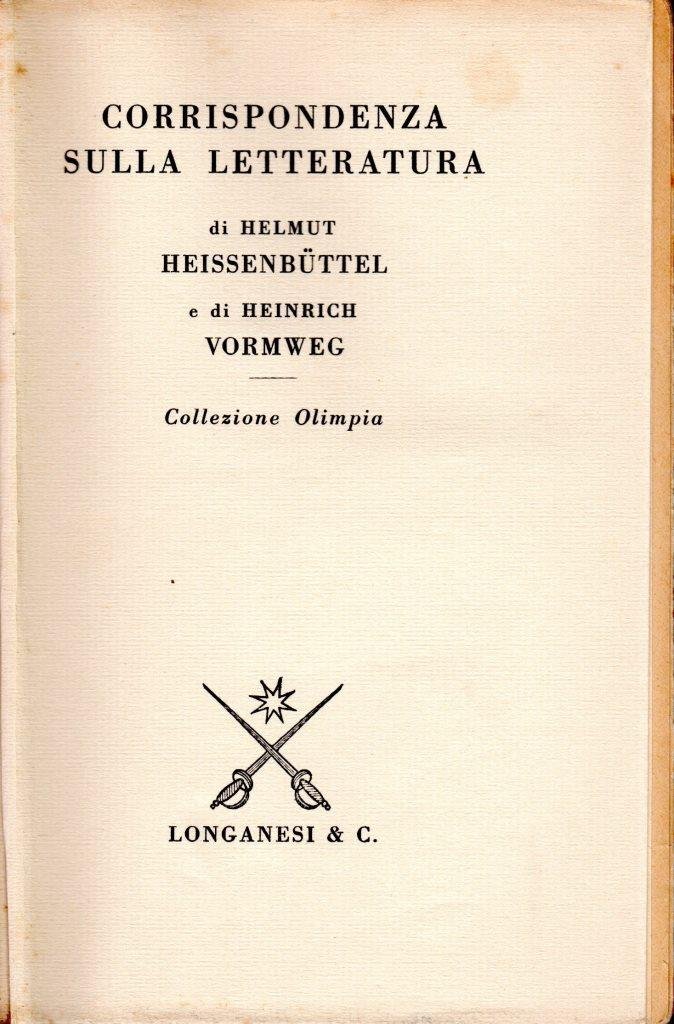 Corrispondenza sulla letteratura, edizione 1969, pp. 168, formato 12,5 x 19.<BR>Copertina morbida di color crema con titoli in nero al piatto anteriore e sul dorso. Titolo originale: Briefwechsel uber Literatur. Traduzione dal tedesco di Alice Ceresa. Volume facente parte della collana Olimpia, diretta da Domenico Naldini. <BR>Buone condizioni.