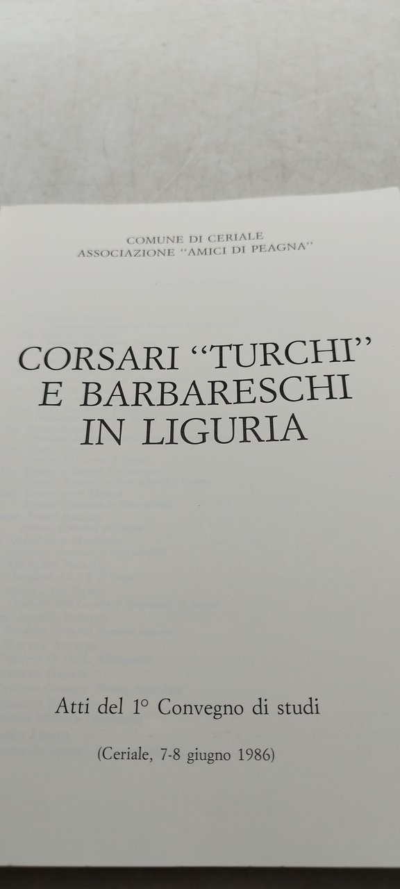 corsari turchi e barbareschi in liguria atti del 1^convegno di studi . , 1987 italiano, pp.244 ^^^