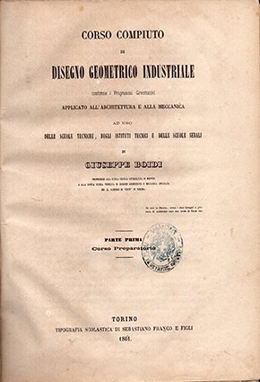 Conforme i programmi governativi applicato all'architettura e alla meccanica ad uso delle scuole tecniche, degli sitituti tecnici e delle scuole serali Vol I testo, vol II XXVII tavole a doppia pagina