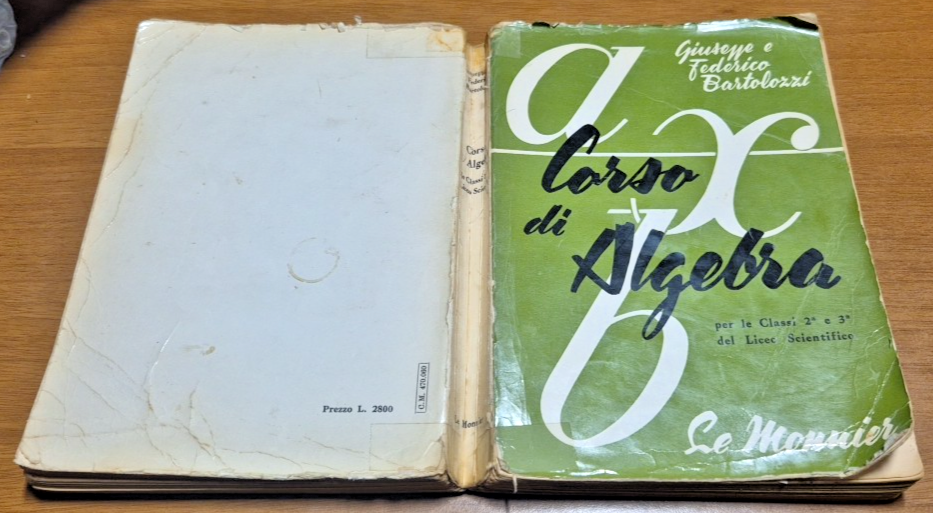 CORSO DI ALGEBRA Giuseppe e Federico Bartolozzi 1962 Le Monnier Libro per liceo