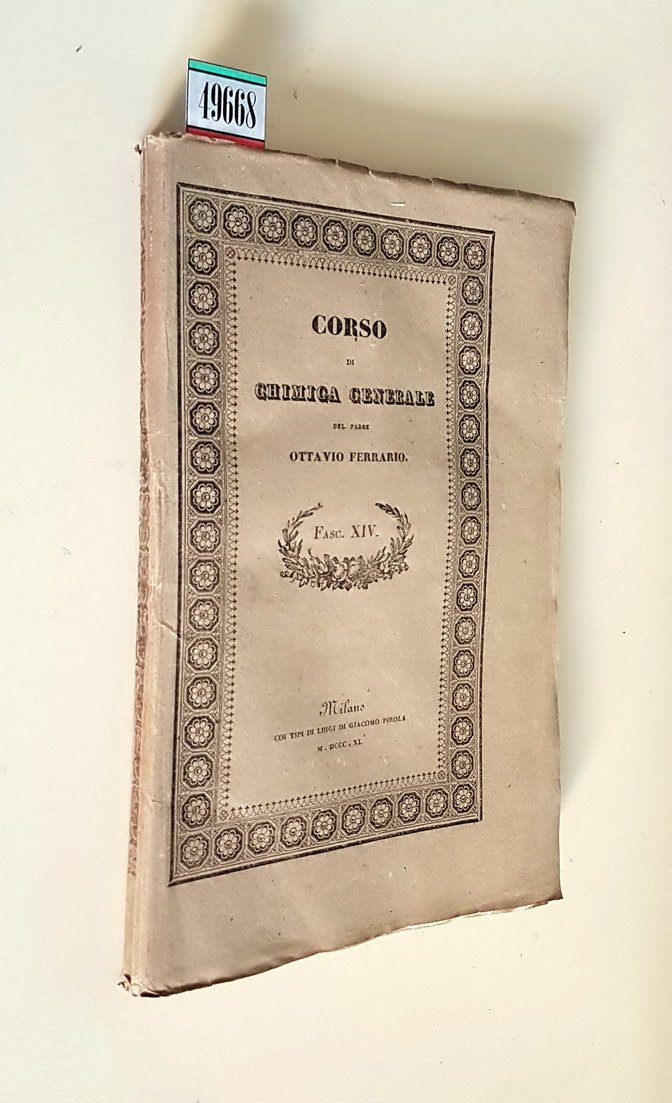 Edizione: fascicolo n. xiv appartenente all'opera: corso di chimica generale (tomo iv) del padre ottavio ferrario
