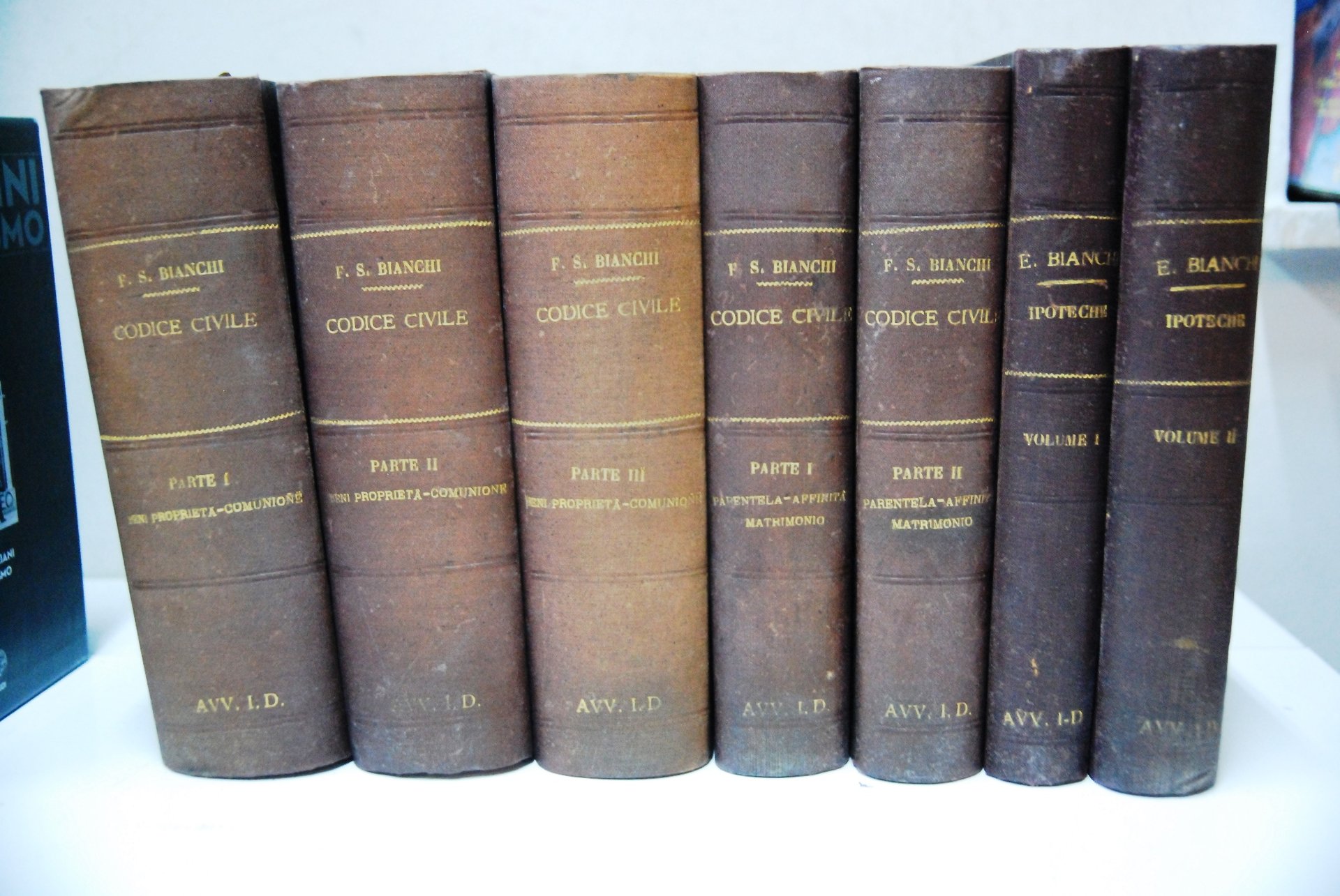 Bianchi Corso di codice civile italiano dei beni della proprietà comunione 3 vol, parentela affinità matrimonio 2 vol, ipoteche 2 vol. UTET 1890 OTTIME RIGIDA .