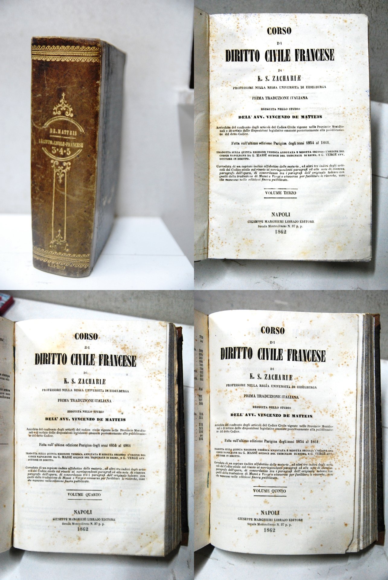 zachariae zacharie corso di diritto civile francese prima trad. italiana voll. 3,4,5 in unico tomo. napoli marghieri 1862 .