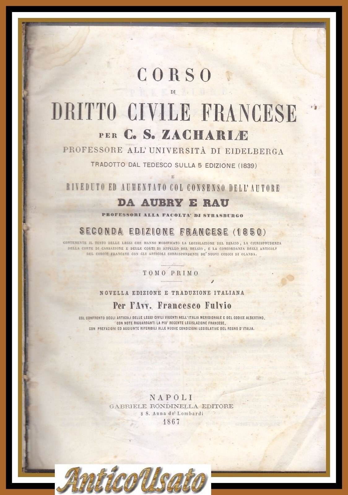 CORSO DI DIRITTO CIVILE FRANCESE Zachariae 3 volumi in 1 1862 Rondinella libro