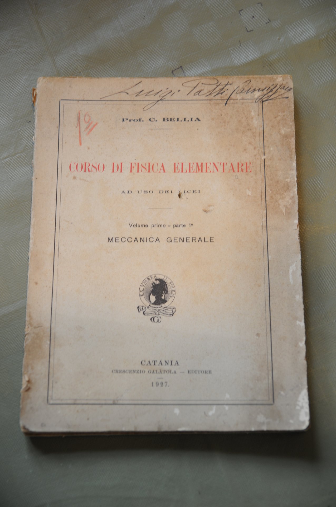 concetto bellia corso di fisica elementare ad uso dei lieei vol. 1 meccanica generale . 1927 .