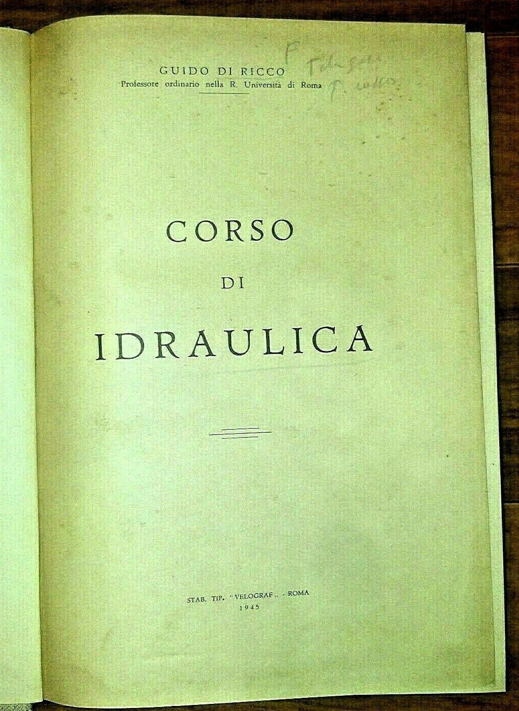 CORSO DI IDRAULICA di Guido Di Ricco 1945 libro ingegneria usato Velograf