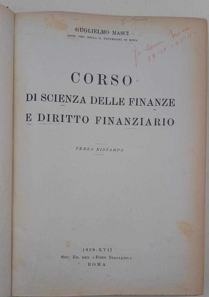 CORSO DI SCIENZA DELLE FINANZE E DIRITTO FINANZIARIO( 1939)