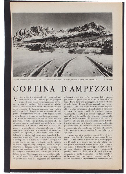 CORTINA D'AMPEZZO. Stralcio da "Le vie d'Italia", marzo 1938.