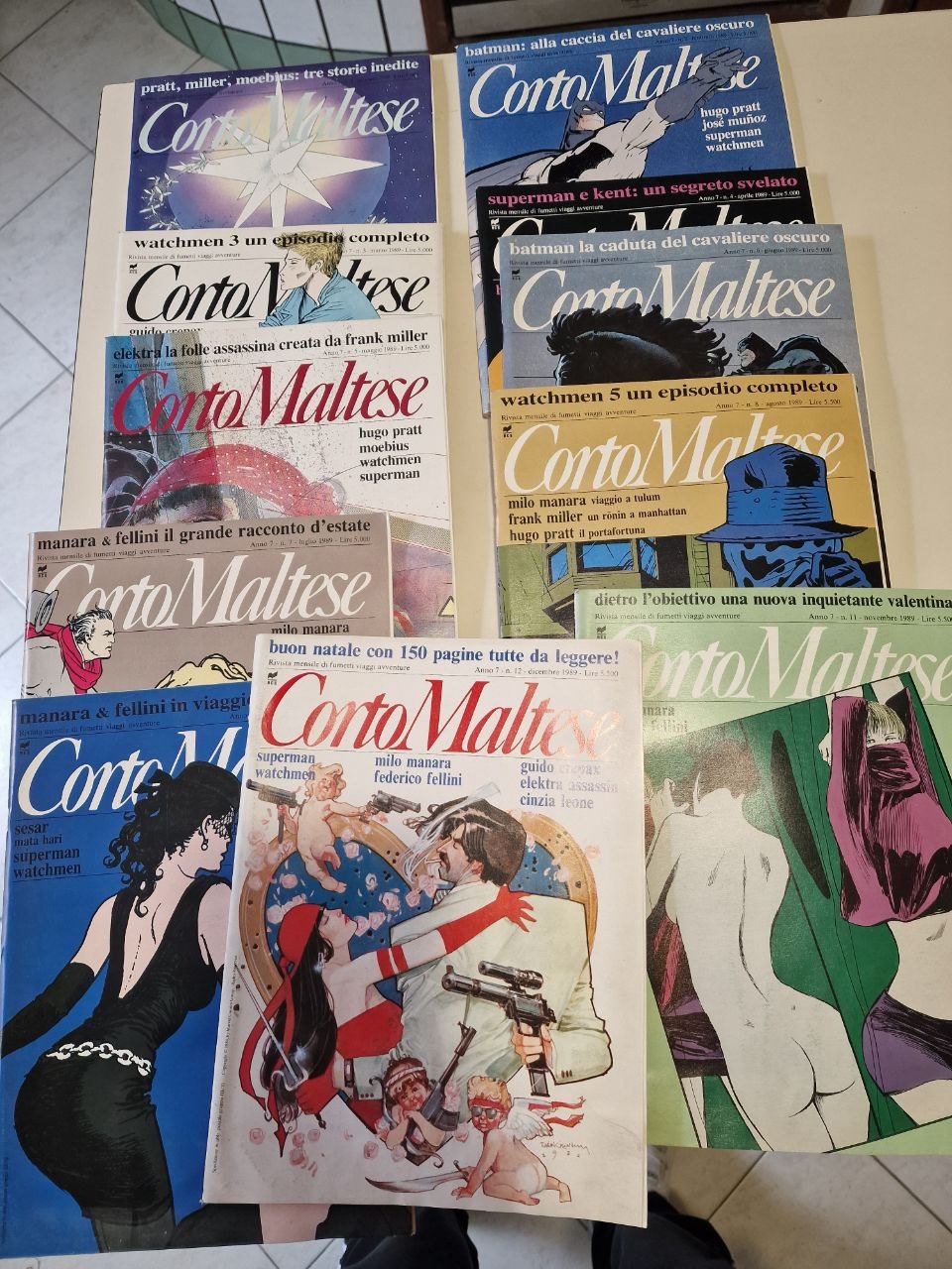 CORTO MALTESE RIVISTA MENSILE DI FUMETTI ANNO 7 LOTTO DI 11 NUMERI ANNO QUASI COMPLETO MANCA SOLO IL NUMERO 10 ERANO UN FONDO DI MAGAZZINO QUINDI LE RIVISTE NON SON MAI STATE LETTE, POSSONO PRESENTAR QUALCHE PICCOLO SEGNO VALUTO PROPOSTE PER ACQUISTI NUMERI SINGOLI ELENCO:N 1 GENNAIO CON SUPPLEMENTO SUPERMAN N 2 FEBBRAIO CON SUPPLEMENTO SUPERMAN E CARTOLINA ABBONAMENTO N 3 MARZO CON SUPPLEMENTO WATCHMEN E CARTOLINA N 4 APRILE CON SUPPL. SUPERMAN E CARTOLINA N 5 MAGGIO CON SUPPL. SUPERMAN E CARTOLINA N 6 GIUGNO CON SUPPLEMENTO SUPERMAN N 7 LUGLIO SUPPLEMENTO SUPERMAN N 8 AGOSTO CON SUPPL. WATCHMEN N 9 SETTEMBRE CON SUPPLEMENTO SUPERMAN (PAGINE UN P? ONDULATE) N 11 NOVEMBRE CON SUPPLEMENTO SUPERMAN N 12 DICEMBRE CON SUPPLEMENTO SUPERMAN