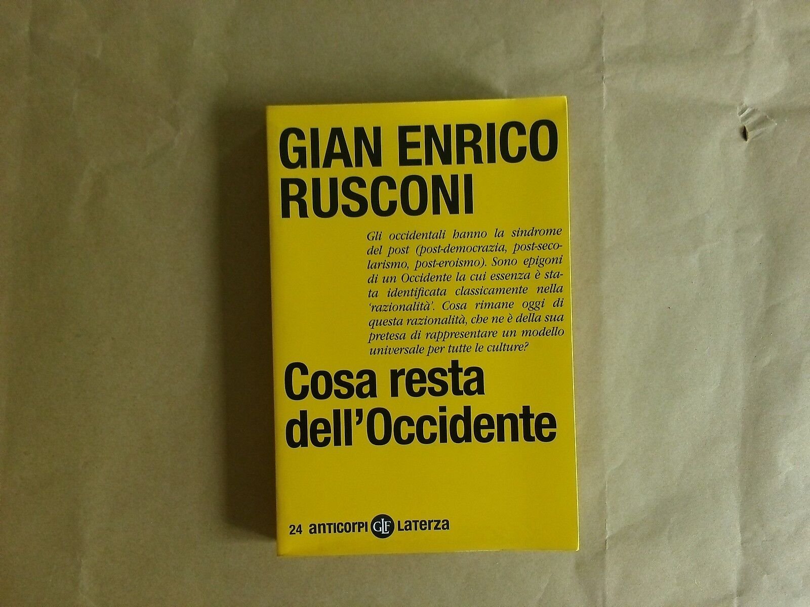 Rusconi - Cosa resta dell'Occidente Laterza Prima edizione 2012 Libro in ottime condizioni. Minimi segni del tempo. Non esitate a contattarci per altre foto o richieste.