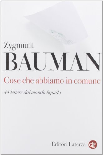Bauman, Zygmunt Cose che abbiamo in comune. 44 lettere dal mondo liquido. , Laterza 2012 italiano, 217 Prima edizione Laterza - I Robinson / Letture - settembre 2012 - in COPERTINA FLESSIBILE ILLUSTRATA con alette informative molto ben conservata. Pagine all'interno in ottime condizioni. Disponibilità immediata e spedizione con corriere tracciata.