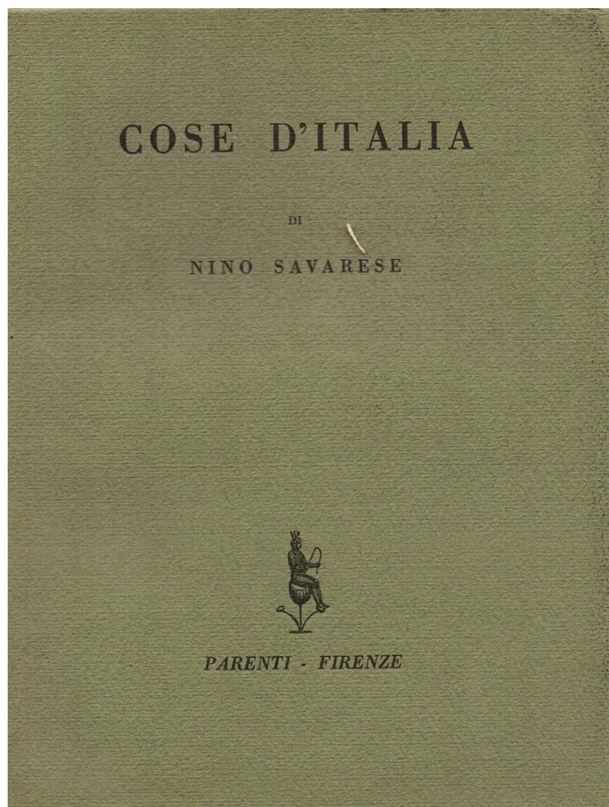 In-8°, pp. 169, (3), brossura editoriale protetta da velina. All'antiporta, ritratto di Savarese di Renato Guttuso. Perfetta copia a fogli chiusi. Prima edizione, trentatreesimo volume della collezione di 'Letteratura', impresso in soli 305 esemplari numerati (n° 95 su carta doppio Guinea). Prose di viaggio in Italia: 1). Pietre e tenerezze dell'Umbria - Le pietre dell'Umbria - Caratteri - Le fatiche del Nera. 2). Paesi e gente del Veneto - Presentimento del mare - Volti e parole - La commedia - Venezia - Chioggia, città senza terra. 3). Solitudine della Sardegna - Arrivo - Le greggi - Case e nuraghi - Amore e pena di solitudine - Augurio e congedo. 4). Caratteri ed industrie dei marchigiani - Terra chiara - Fiera a Cingoli - La carta fabbricata a mano. 5). Monti e piani d'Abbruzzo - Un altro mondo su questi monti. - Valle del Sagittario - Discesa al piano - Aquila - Le ventitrici preziose - Storia di un borgo, in quel Scanno. 6). Pompei - Via dell'Abbondanza. 7). Nuove stampe di Roma - Il Papa per le vie - Le navi di Nemi. 8). Spettacoli naturali in Sicilia - Gita sull'Etna - Fantasticheria - La 'mattanza' a Favignana. 9). Toscana - Campagna toscana. Spaducci, p. 265. Gambetti / Vezzosi, p. 1041: 'Non comune e piuttosto ricercato'.