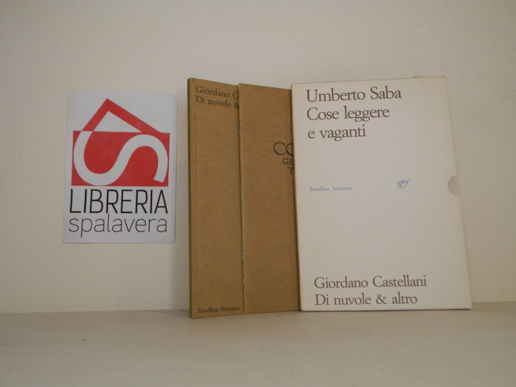 8°, 21.5 cm, 2 volumedi di pp. 16, 93, brossure editoriali con titoli al piatto e al dorso, entro cofanetto cartonato con titoli ai piatti e al dorso. Leggero alone e segni d'uso al cofanetto, piccola abrasione al margine superiore dello stesso, peraltro i volumetti sono ottimi. Cose leggere e vaganti: illustrazioni e cura di Giotti, Virgilio, esemplare n. 15 di 35 numerati. Ristampa anastatica. Di nuvole e altro: illustrazioni e commenti del manoscritto di Saba.. *** TUTTI I NOSTRI LIBRI SONO VISIBILI PREVIO CONTATTO MAIL O TELEFONO NELLA NUOVA SEDE DI MILANO: LIBRERIA COSMOPOLIS, VIA JOMMELLI, 22. ***
