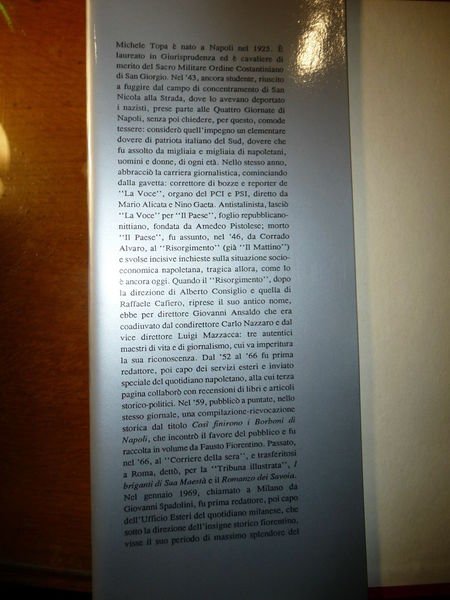 DESCRIZIONE: Fratelli Fiorentino Napoli 1990 I^ Ed. br. ed. ca. in tela con sovracc. ill. e cofanetto pp. 741 con ill. b/n n.t. e f.t. in 8°. Importante libro scritto dall’autore anche di “I BRIGANTI DI SUA MAESTA” che è stato uno dei primi a rivisitare la storia dell’annessione del Sud al Regno d’Italia che cominciarono a squarciare quella spessa cortina di menzogne che alimenta il mito del Risorgimento. IMPORTANTE E RARO DA TROVARSI IN QUESTE CONDIZIONI CON COFANETTO. Indice completo in foto. CONDIZIONI: Ottime, vol. completo del suo cofanetto, EX-LIBRIS (FRANCOBOLLO) con sopra timbrino d'appartenenza del vecchio proprietario. PESO / WEIGHT: 1427gr. without package