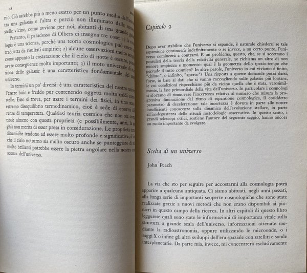 Il compito che la cosmologia pone agli scienziati è quanto di più arduo si possa immaginare. Si tratta di costruire un modello teorico dell'universo che ne descriva le proprietà passate, presenti e future e che sia altresì compatibile con i dati della nostra esperienza terrestre. Non c'è da stupirsi che questo campo sia stato per secoli riservato alle esercitazioni teologiche. Gli inizi della cosmologia scientifica in effetti risalgono a non più di cinquant'anni fa e coincidono praticamente con i primi fondamentali lavori di Hubble sulle galassie.