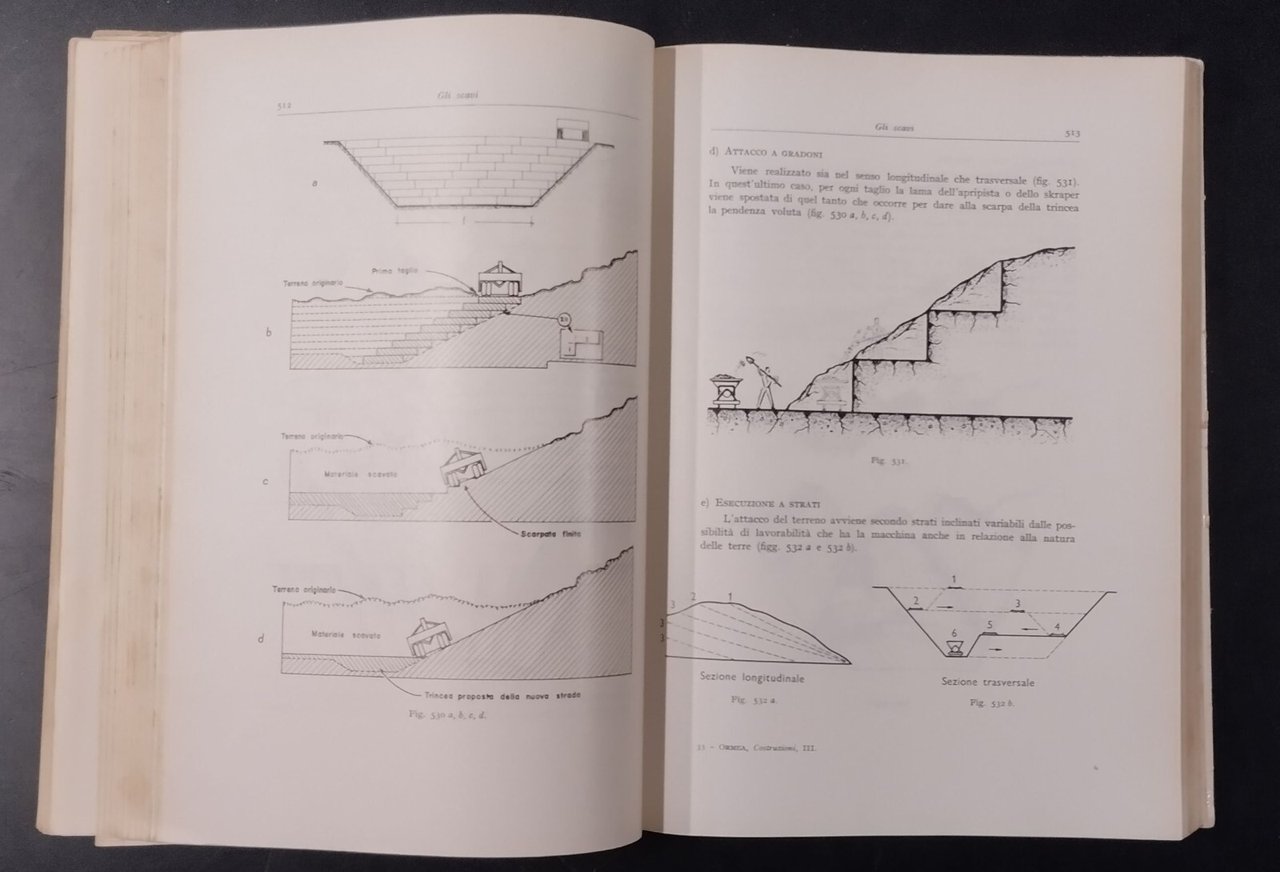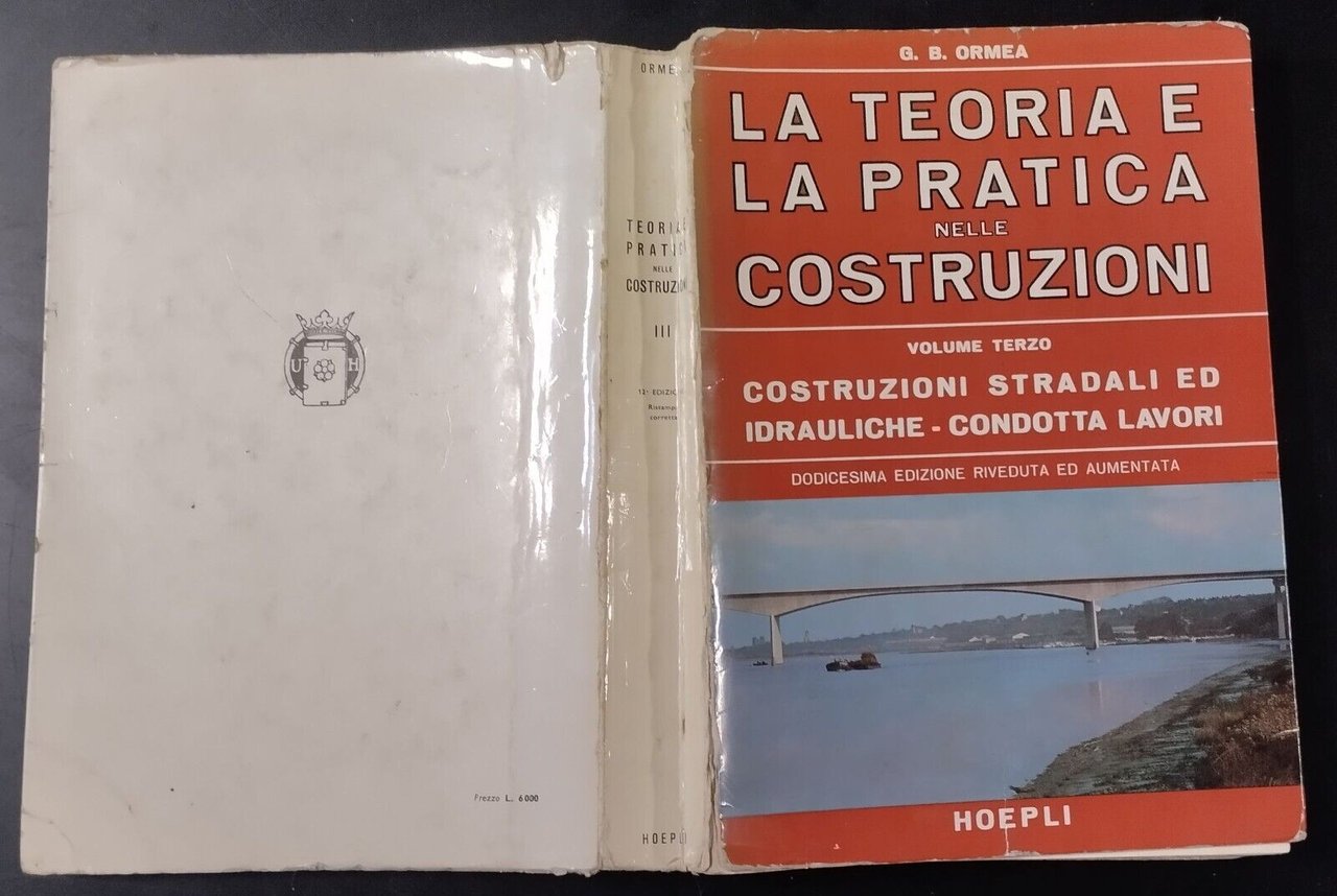 LA TEORIA E LA PRATICA NELLE COSTRUZIONI volume terzo: COSTRUZIONI STRADALI ED IDRAULICHE – CONDOTTA LAVORI di G.B. Ormea. Hoepli editore, 1968. XV, 845 pagine, 1003 figure, XI tavole in nero e a colori, XLV tabelle. Copertina editoriale in brossura. Dimensioni: 17 x 24 cm. Stato di conservazione: buono (pagine normalmente ingiallite, sottolineature e chiose a matita, copertina un po’ sciupata)