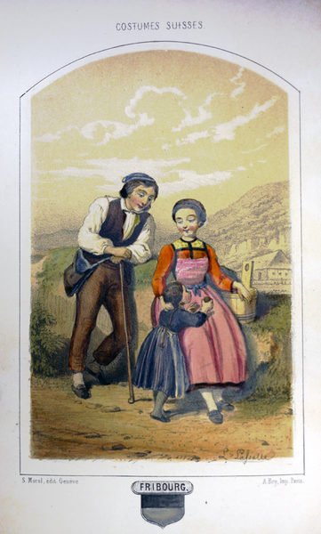 In-8 p. (mm. 207x145), mz. marocchino coevo, filetti e titolo oro al dorso. Il volume contiene una magnifica raccolta di 24 tavole litografate e con pregevole coloritura d'epoca, che raffigurano personaggi appartenenti ai 22 cantoni svizzeri, nei loro tipici costumi. Ogni illustrazione porta al margine inferiore lo stemma del relativo cantone, e precisamente: Zug - Thurgovie - Berne - Vaud - Schaffhouse - Unterwalden - Saint-Gall - Tessin - Berne / Guggisberg - Glaris - Neuchatel - Schwytz - Soleure - Argovie - Lucerne - Berne / Oberhasli - Zurich - Uri - Fribourg - Genève - Valais - Appenzell - Bale Grisons. Cfr. Colas,1782.Esempl. molto ben conservato.