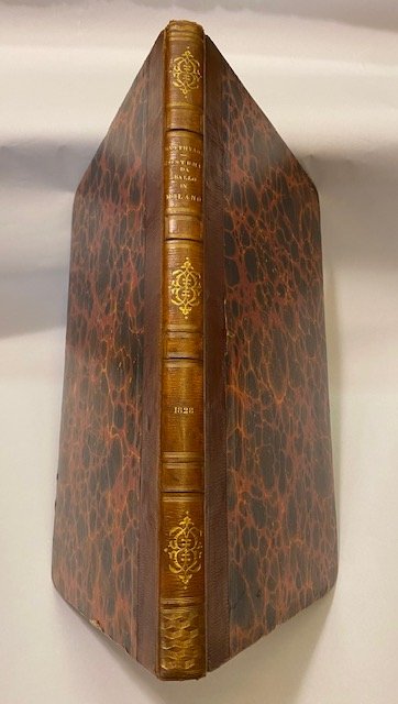 Rarissimo esemplare completo del frontespizio e di tutte le 60 tavole colorate a mano. Legatura coeva in elegante mezza pelle, dorso con nervi, titolo e fregi decorativi in oro, angoli in pelle, carte di guardia marmorizzate, lievissimo foxing al frontespizio ma copia in eccellenti condizioni. Le sessanta tavole incise dall'Hayez e colorite editorialmente a tempera, raffigurano gli ospiti partecipanti alla festa con i loro stupendi costumi. Il ballo si svolse la sera del 30 gennaio nel palazzo del Conte in Porta Orientale, l’invito venne accolto con molto favore dalla nobiltà milanese fra cui parteciparono anche i Litta, Borromeo, Belgioioso, Bagatti-Valsecchi, Serbelloni, Trivulzio, Visconti e molti altri. La festa fu organizzata dal conte ungherese Batthyany e fra le tavole vi sono anche lo stesso conte vestito da Capo dei Montenegrini e Hayez nelle vesti di Giulio Romano. Alla presente copia manca la carta con la dedica dell'Editore al Conte Antonio Giuseppe Batthyany, Ciambellano di S.M.I.R.A e la carta dell’indice delle tavole. Nei cataloghi online sono registrate pochissime copie complete (soprattutto delle tavole e del frontespizio) questo probabilmente perché molti dei personaggi ritratti ottennero di poter tenere la tavola con la loro illustrazione.