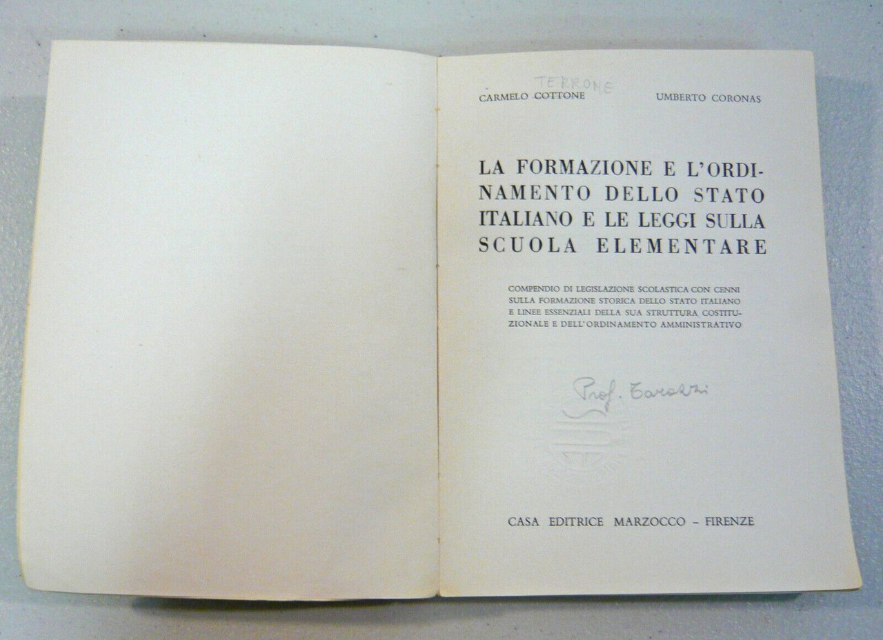 Cottone,L’ORDINAMENTO DELLO STATO ITALIANO.LE LEGGI SULLA SCUOLA ELEMENTARE,1958
