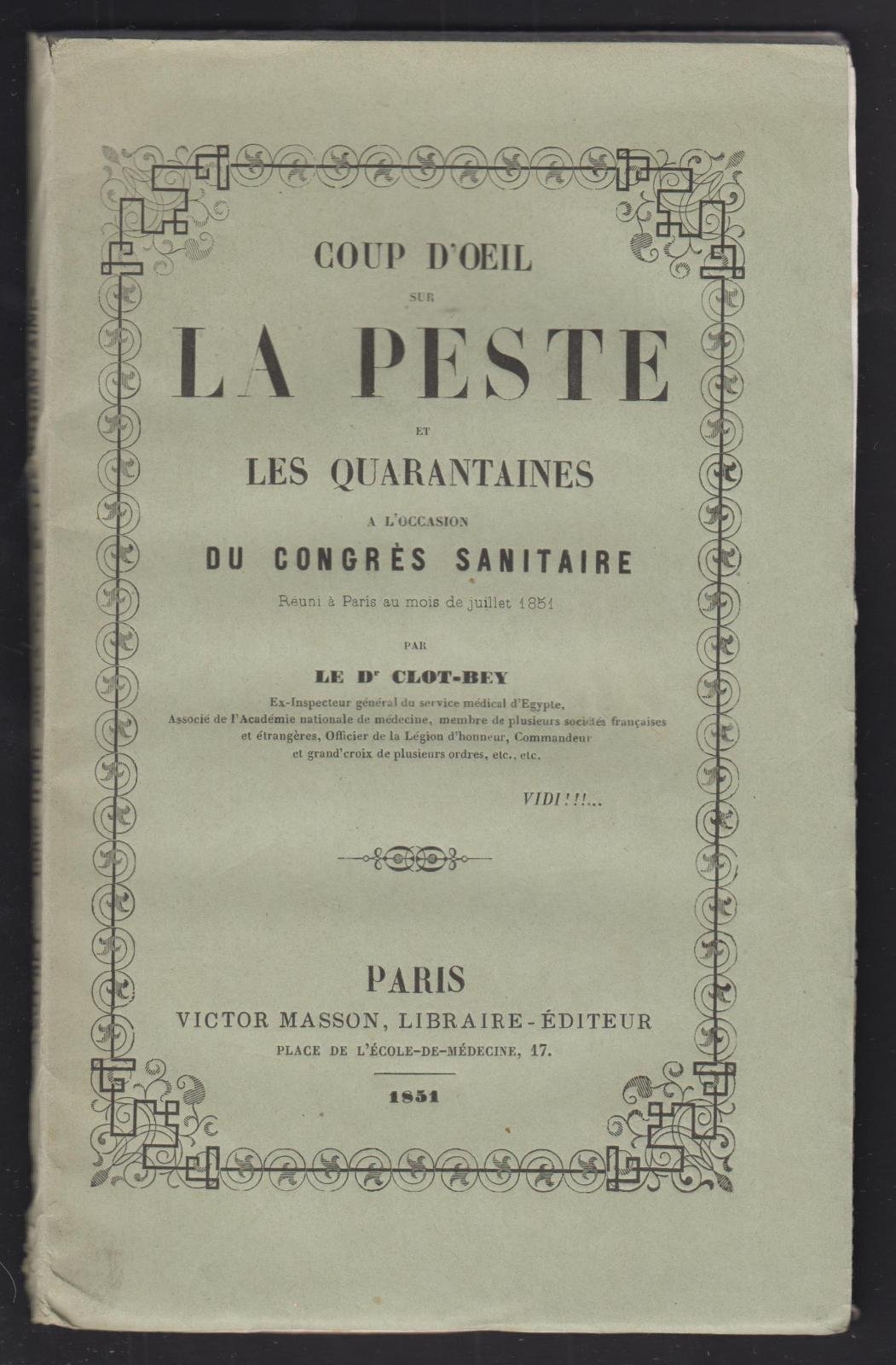 Coup d'oeil sur la Peste et les quarantaines Paris 1851