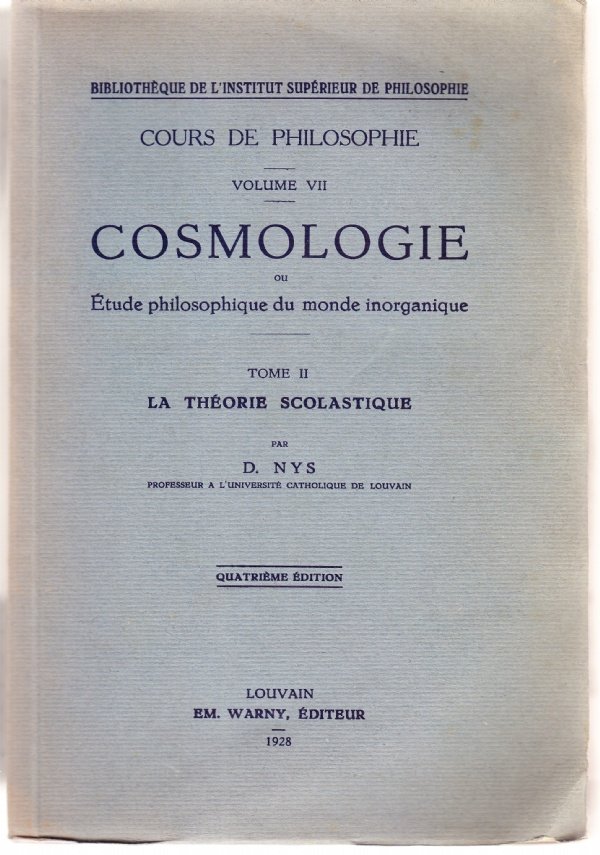 Cour de philosophie Volume VII. Cosmologie ou Etude philosophique du monde inorganique. Tome II: La théorie scolastique