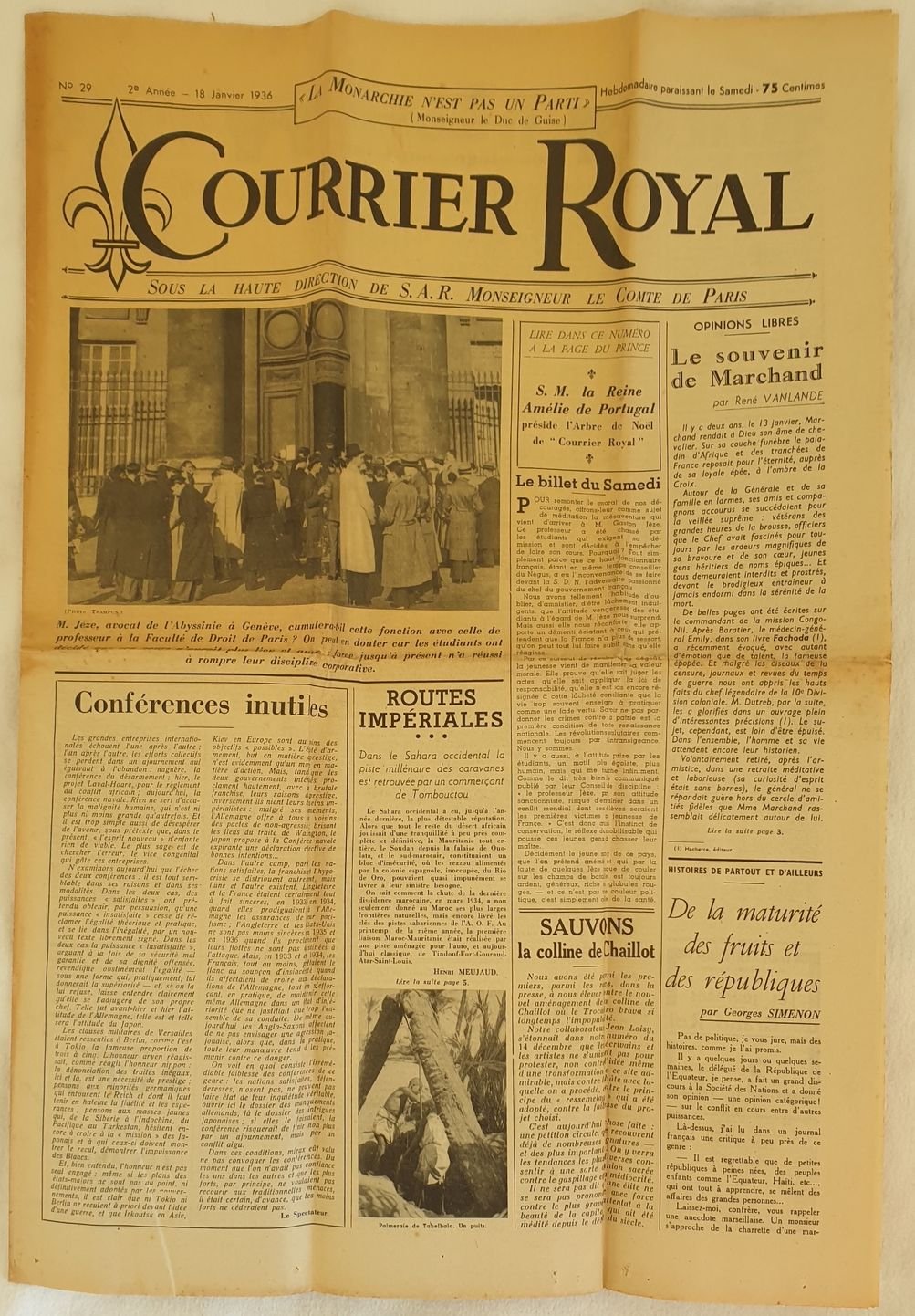 COURRIER ROYAL N° 29 - 2° ANNEE - 18 JANVIER 1936
