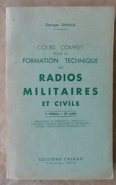 Cours Complet pour la Formation Technique des Radios Militaires et Civils. 4ème édition. Modulation en fréquence. Lampes O.T.C. Nouveaux appareils émetteurs et récepteurs. Radars. Alimentations Stabilisés etc.