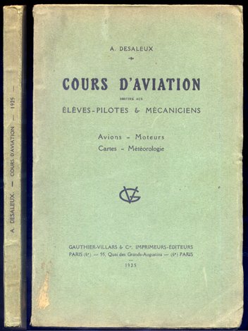 Cours d'Aviation. Avions. Moteurs. Cartes. Météorologie. Destiné aux élèves-pilotes et mécaniciens. Préface du Comandant Brocard.