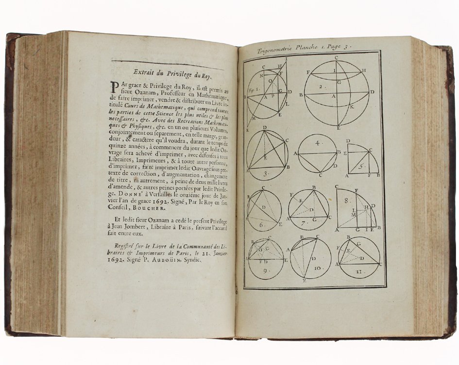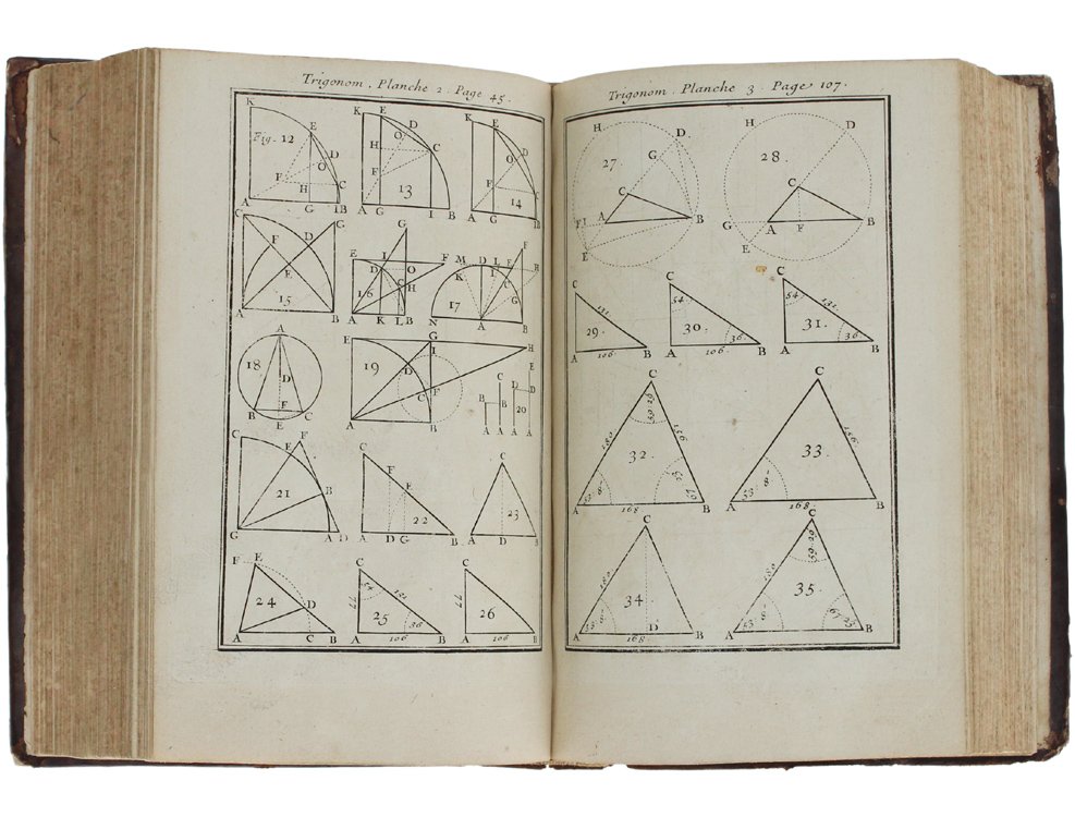 (Codice SM/1838) In 8° (6)-243(1-1) pp. + 7 planches (trigonometrie),170 tables de sinus, tangentes et secantes, et 100 tables de logarithmes. EDITION ORIGINALE. En-tete, lettrines. Reliure peau du temps, dos à nerfs richement orné, mors en partie fendu, coins un peu frottés. Tranches coloriées. Très bon état. ~~~ SPEDIZIONE IN ITALIA SEMPRE TRACCIATA